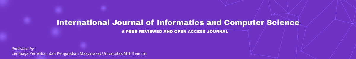 The International Journal of Informatics and Computer Science (IJICS) is a peer-reviewed journal which is published by Universitas MH Thamrin Jakarta. Since 2025, this journal publishes biannually in Mei and November focused to publishing high-quality scholarly works in the fields of informatics and computer science. The journal provides a global platform for researchers, academics, and professionals to present cutting-edge research, theoretical advancements, practical applications, and interdisciplinary approaches that address real-world challenges through technology.